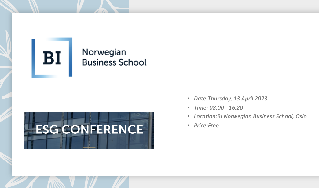 The Centre for Asset Pricing Research (CAPR) at BI Norwegian Business School is pleased to invite academics, investors, practitioners, policymakers, and other interested parties to our ESG Conference in Oslo on April 13, 2023.