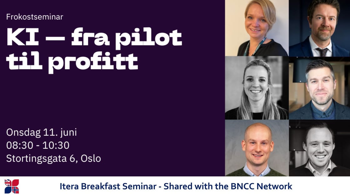 The BNCC is pleased to share an invitation form our member Itera, who together with Glamox and Moelven Byggmodul, is hosting a morning seminar designed for professionals responsible for increasing sales, improving processes, or strengthening the bottom line. Learn how AI can take you from ambition to action.
